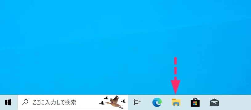 タスクバーにある「エクスプローラー」アイコンをクリックして、エクスプローラーを起動させます。