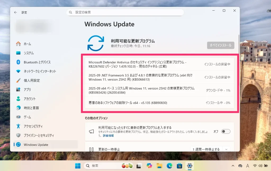 定期の Windows アップデート(更新プログラム)も普通に受けることが可能です。