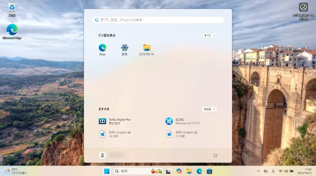 デスクトップ画面が表示されれば、Windows 11 へのアップグレードは完了です。