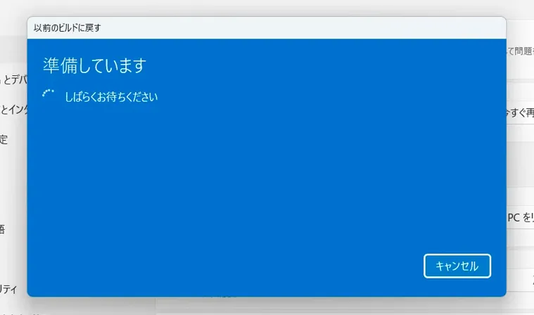 PC が再起動すると、「以前のバージョンの Windows を復元しています…」が表示されます。しばらくこのままで待ちます。