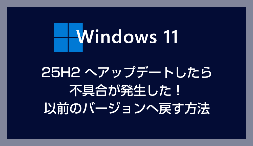 【Windows 11】25H2 へアップデートしたら不具合が発生!以前のバージョンへ戻す方法